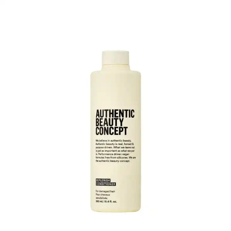Acondicionador para Cabello Dañado Replenish 250ml Authentic Beauty Concept (Nueva Formula), creado como un producto nutritivo en crema diseñado para el cuidado del cabello dañado. Contiene ingredientes como manteca de karité, proteína de arroz y agua de arroz, que ayudan a reparar y sellar la cutícula del cabello. Proporciona hidratación profunda y nutrición esencial. Es adecuado para cabellos dañados, cabellos rubios y decolorados, así como para aquellos que presentan debilidad. Este acondicionador es libre de siliconas y sulfatos. INGREDIENTES Sirope de Arce y Nuez Pacana Conocidos por sus propiedades Nutritivas y calmantes: Antioxidantes Hidratantes y antiinflamatorias PRODUCTO VEGANO producto-vegano BENEFICIOS Repara tu cabello con proteína de arroz, agua de arroz y manteca de karité conocidos por proporcionar: Suavidad Brillo Fuerza Mejorar la elasticidad del cabello