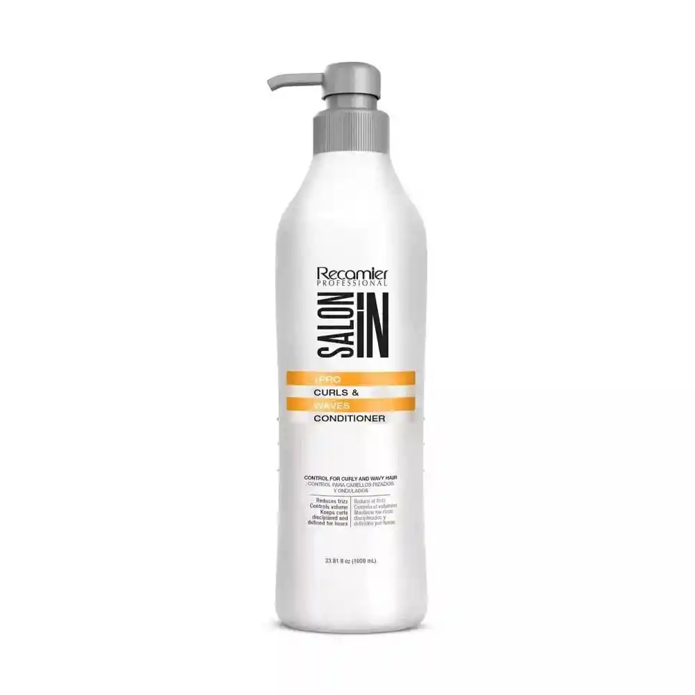 ACONDICIONADOR SALON IN CURLS WAVES 1000 ML : Desenreda, acondiciona y nutre el cabello con rizos y ondas. APLICACIÓN Aplique SALONIN Curls and Waves Conditioner sobre el cabello húmedo de medios a puntas. Enjuague. Repita y enjuague. Para mejores resultados utilice toda la linea SALONIN Curls and Waves Cuidado Del Color Natural, Control De Rizos Ondas DETALLES Desenreda, acondiciona y nutre profundamente el cabello rizado y ondulado. Su fórmula combina ingredientes que actúan directamente en la fibra capilar de adentro hacia afuera, hidratando su capa externa, reforzando su estructura y proporcionando rizos y ondas disciplinados, definidos, suaves y naturales por horas INGREDIENTES Agente acondicionador, Keratina, Aceite de Jojoba y Biotina. KERATINA Proteína ampliamente reconocida por su capacidad reconstructora del cabello, que aporta nutrición y restauración. ACEITE DE JOJOBA Ayuda a reparar la cutícula del cabello devolviendo el brillo perdido. Limpia los folículos pilosos para un crecimiento más sano del cabello.