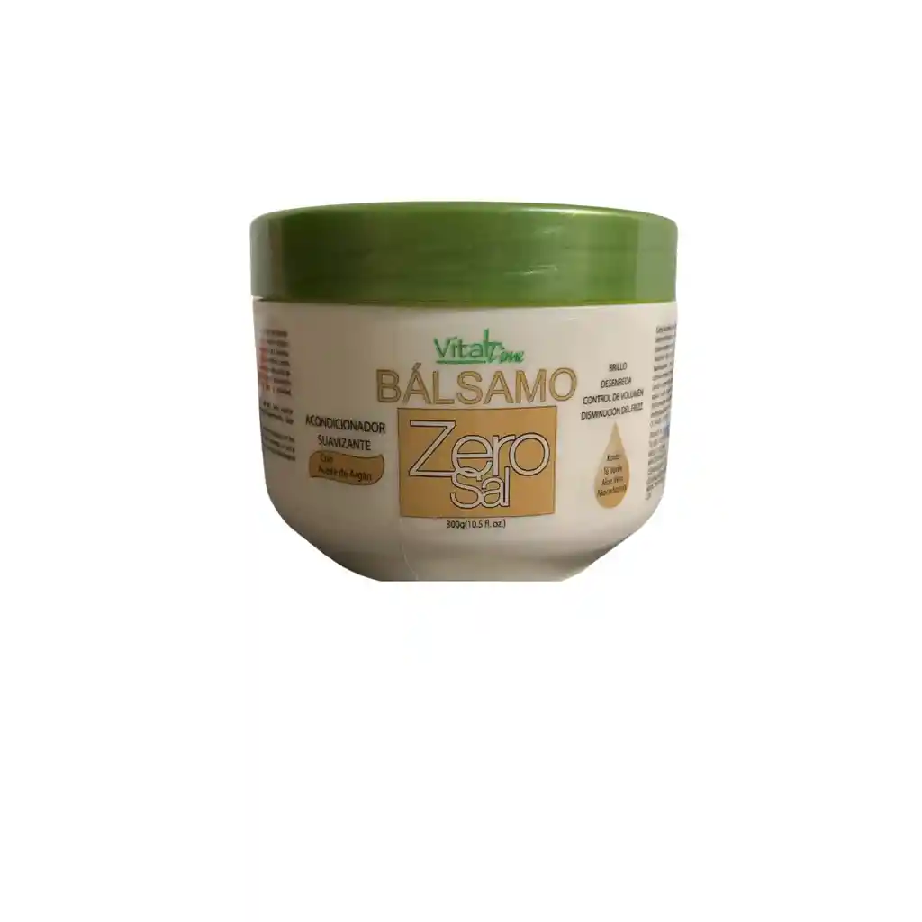 Acondicionador VitalTime Balsamo Zero Sal Es una formula balanceada , desarrollada para todo tipo de cabello, en donde se combinan los efectos suavizantes de acondicionadores quienes actuan efectivamente disminuyendo el frizz y facilitando el desenredo del cabello. Esta formulacion es la combinacion de 12 oleos legendarios y nutritivos, estos ingredientes aportan flexibilidad e hidratacion. Por su contenido de aceite de coco, aceite de argan, karite, te verde y aloe vera poseen excelentes propiedades emolientes, proporcionando sedosidad, brillo y vitalidad, previniendo la resequedad.