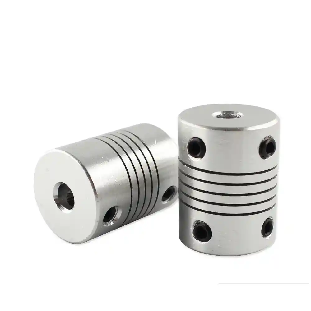 La forma mas sencilla de transmitir potencia desde un motor a un eje es utilizando un acople. Siempre existiran problemas de alineamiento entre el eje del motor y el eje a impulsar, por lo que no es recomendable utilizar acoples rigidos para la union. Es para esto que se utilizan acoples de tipo flexible que permiten solucionar el problema de los defectos de alineamiento. Este acople es de aluminio maquinado, posee un ranurado helicoidal y tornillos hexagonales para su ajuste con los ejes. Son muy utilizados en sistemas CNC, impresoras 3D, fajas transportadoras. ESPECIFICACIONES: Diametros interiores: 3mm, 6.35mm Dimensiones: Largo 25mm y Diametro exterior 18mm Tornillo de fijacion(DIN913): M4 (llave Allen #2) Peso: 15 gramos Material: Aluminio LA COMPRA INCLUYE: 1x ACOPLE 3x6.35mm