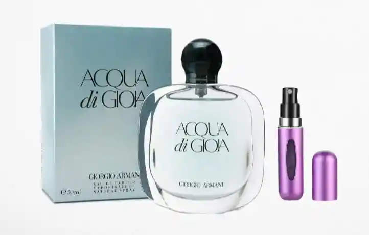 Acqua Di Gioia 1.1 es una fragancia femenina tipo Eau de Parfum, con perfil floral acuático y fondo cítrico. Su composición combina limón Primofiore, menta triturada y jazmín de agua en la salida; peonía, pimienta rosa y cedro en el corazón; y azúcar moreno y madera de cedro en el fondo. Diseñada para proyectar frescura mediterránea, feminidad luminosa y conexión con la naturaleza. Presentación en frasco de 100 ml versión 1.1, acompañado de perfumero recargable (color sujeto a disponibilidad). Producto empacado en caja con celofán, pin y sello.