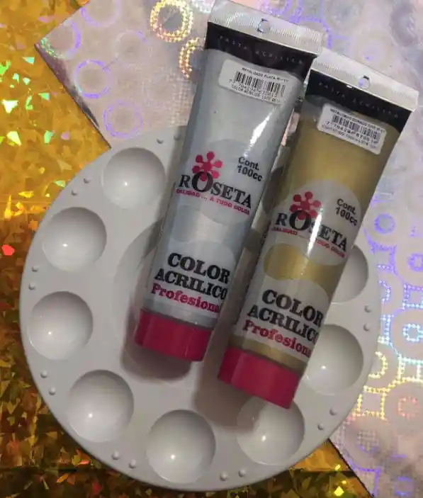 ACRILICO PINTURA PROFESIONAL ROSETA DORADO O PLATEADO 100CC