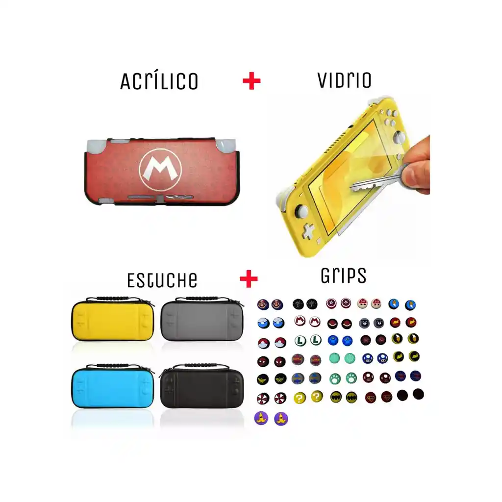 Acrilico Protector De M Mario + Estuche + Vidrio + 2 Grips Compatible Con Switch LITE