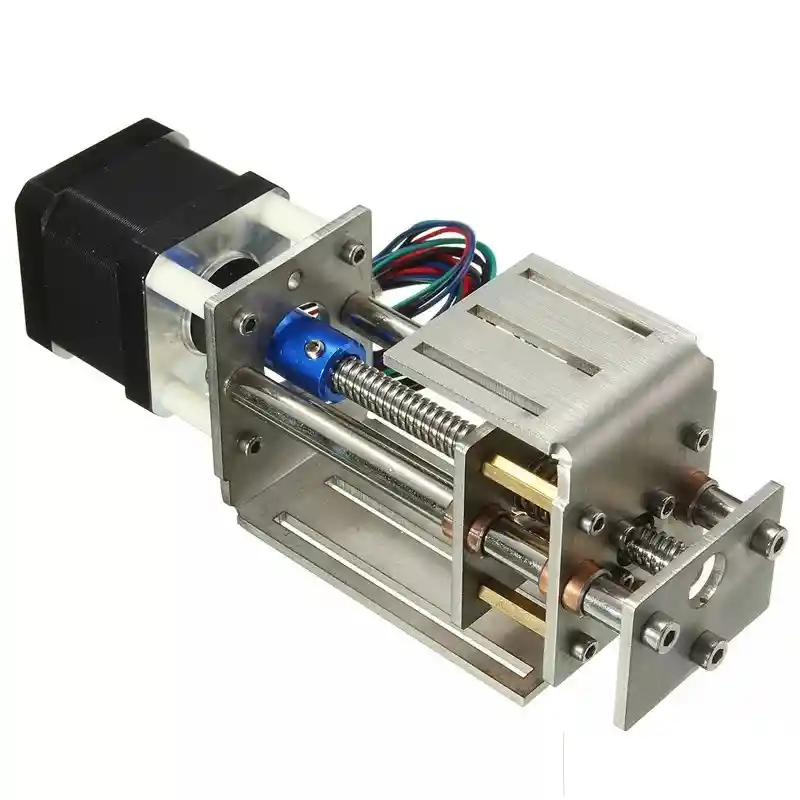 Desplazamiento del eje Z: 55 mm Material: acero Pasos del motor: 800 pasos / mm Voltaje: 12V Actual: 1.7A Tamaño del motor: aprox: 41mmx41mm tamaño: aprox: 170mmx67mm Ajuste de posicion arriba y abajo Fijacion de tornillos M3, tambien se puede fijar al asiento del motor 755 o montado con pluma u otro equipo Tornillo trapezoidal: diametro 8 mm, paso 2 mm, con antibacklash. LA COMPRA INCLUYE: 1X ACTUADOR EJE Z CNC