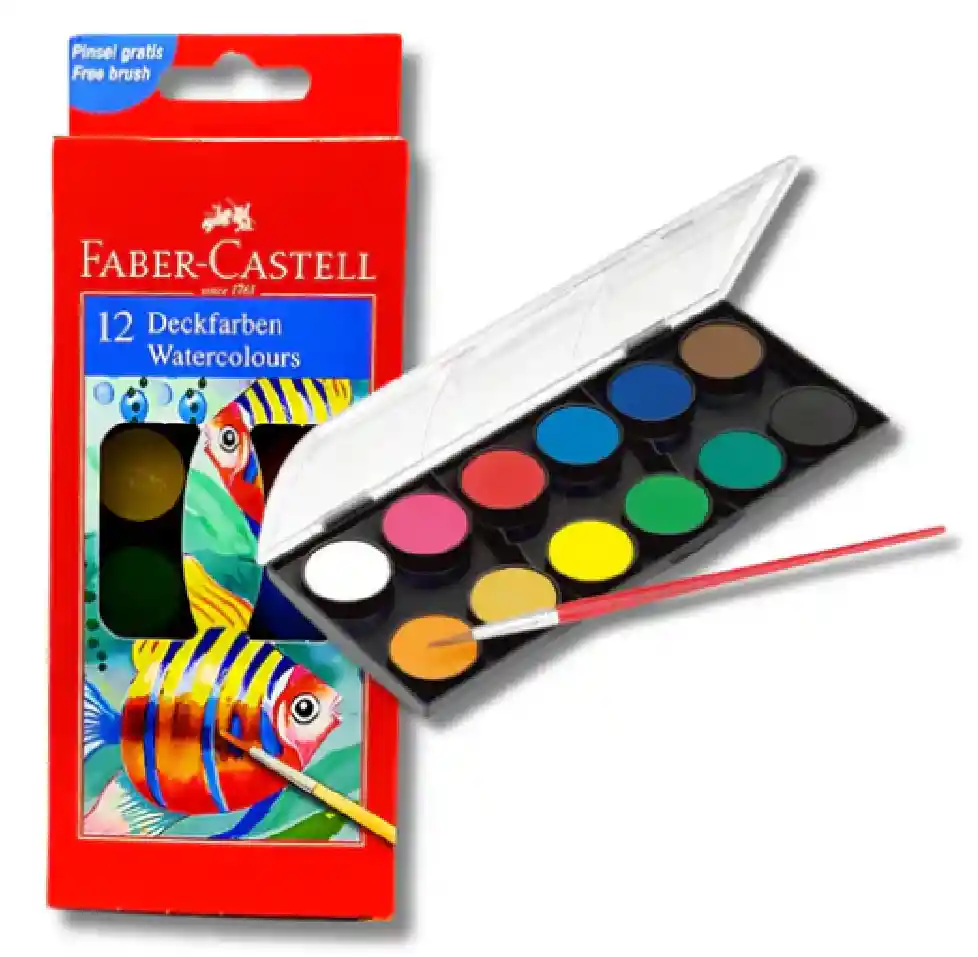 Acuarelas escolares x 12 uds. Características: • Colores diferentes. • Acuarelas en pastillas, tonos intensos. • Pigmentos de gran cubrimiento sobre papel y otras superficies. EAN 8690826250110