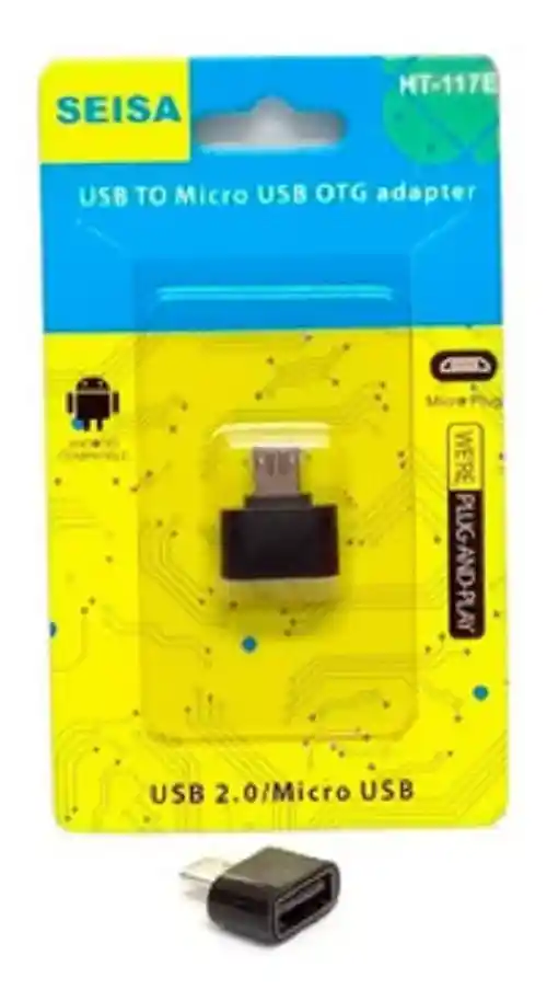 Descripción • Adaptador Convertidor Usb 2.0 Otg Hembra A Micro Usb Macho • El adaptador OTG (en tiempo real) le proporcionó una forma directa y conveniente de compartir datos, archivos, video y audio entre dos dispositivos digitales, como teléfonos móviles y tabletas. • Sincronice datos (archivos, imágenes, video, música) con su disco flash USB, lector de tarjetas USB, teléfono móvil. • Opere su teléfono inteligente más fácilmente conectando el teclado USB / mouse USB. • Adecuado para teléfonos inteligentes Micro USB de 5 pines. • La función OTG de alta velocidad. • Rendimiento estable, plug and play. • Conecta tu disco Flash USB, lector de tarjetas, teclado, ratón, etc. • Dispositivos USB para ampliar las funciones de tus teléfonos y tabletas Android. • Compatible con teléfonos móviles Android, tabletas, sistemas GPS, PDAs, dispositivos OTG, cámaras digitales, etc. • Dispositivo que te permite conectar una memoria USB a su teléfono Android, haciéndolo de una manera fácil y económica. • Constituye una excelente manera de agregar datos a su teléfono o proporcionar almacenamiento adicional. No necesariamente funciona con un dispositivo de memoria USB, también funciona colocando un lector de MicroSD. • Puede colocar por intermedio de él, un teclado USB a su teléfono y desde el cuál puedes escribir lo que consideres necesario. • Puede escuchar toda la música que guste y tenga almacenada en su memoria USB o en la memoria adosada mediante este dispositivo OTG.
