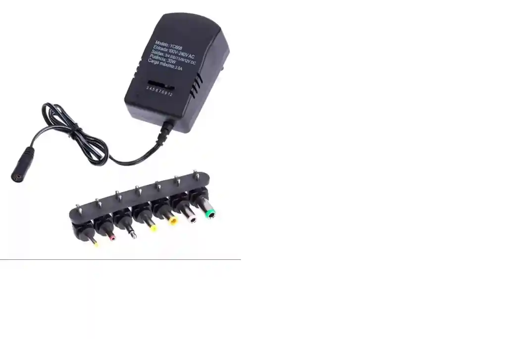 Hecho de material importado de alta calidad, transformador de alto rendimiento y circuito especial. 2. El ánodo y el cátodo se pueden invertir. El voltaje de salida es de 3v / 4,5v / 6v / 7,5v / 9v / 12v ajustable 3. Equipado con 6 adaptadores de corriente continua, cumple totalmente con tus necesidades. 4. Larga vida útil, no es fácil de dañar, puedes usarlo durante mucho tiempo. 5 amplia aplicación: adecuado para grabadores de reproductor de audio, teléfono, CD, reproductor VCD, repetidor, walkie-talkie, ordenador, órgano electrónico, máquina de juegos, pequeño juego de TV, equipo Médico y de cuidado de la salud, instrumento electrónico por ordenador, etc.
