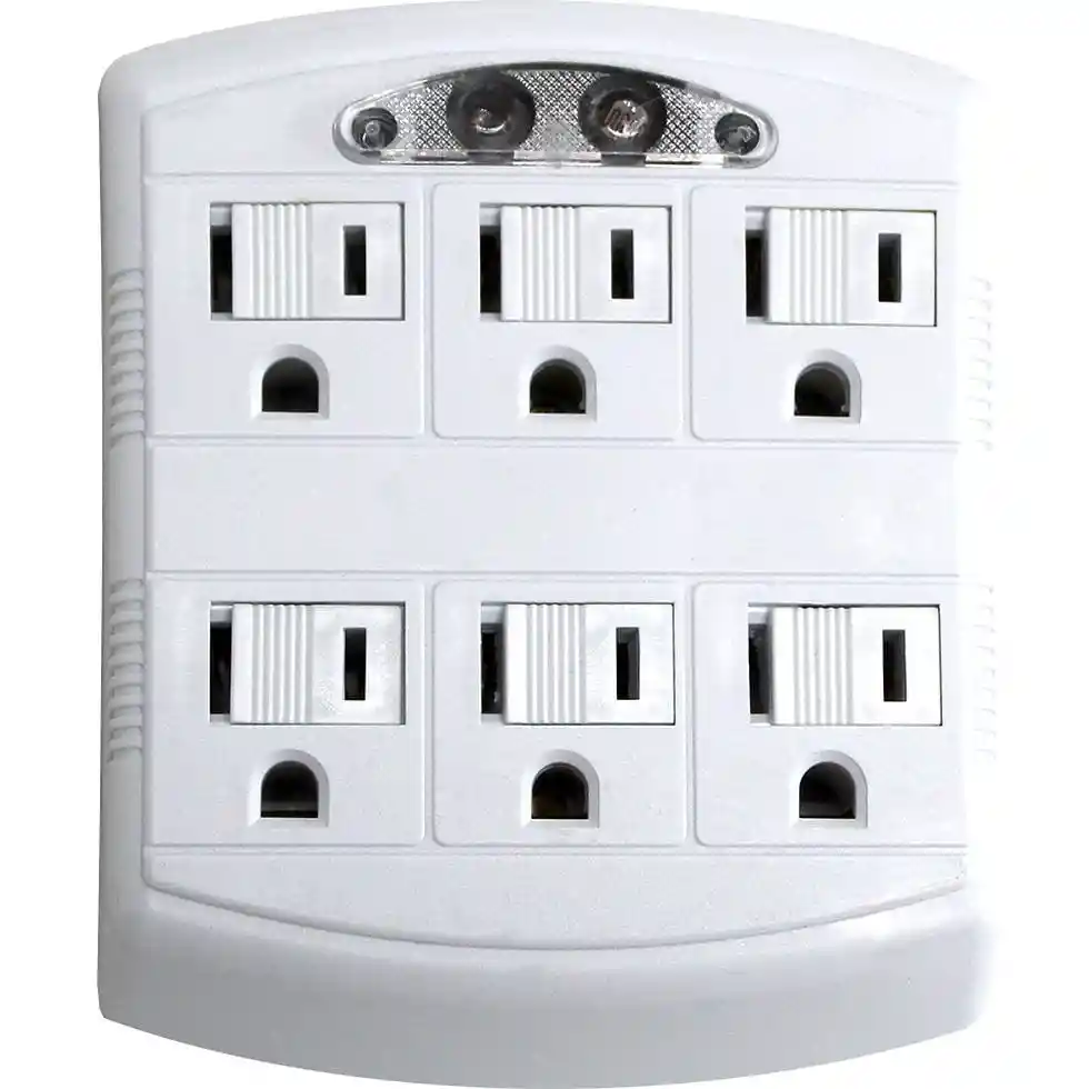 Este adaptador múltiple de pared es perfecto para maximizar el uso de una sola toma de corriente. Ofrece 6 salidas tipo americano (NEMA), cada una con su propio interruptor de encendido/apagado, lo que te permite controlar el suministro eléctrico de forma independiente en cada dispositivo conectado.