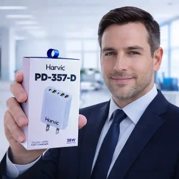 Optimiza tus tiempos de carga con el Harvic PD-357-D. Diseñado para entregar energía estable en múltiples voltajes: 5V – 5.0A 9V – 2.78A 12V – 2.1A Su sistema inteligente distribuye la potencia de forma eficiente sin afectar el rendimiento.