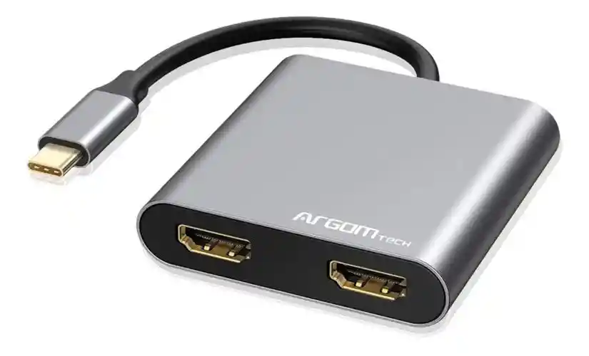 Adaptador One Axess 4 en 1 con doble HDMI, USB 3.0 y paso de alimentación PD de 87 W. ARG-UB-0182 A00651 886540008429 Amplía las opciones de puertos de tu ordenador o móvil con nuestro concentrador USB-C 4 en 1. El One Axess 4 en 1 te permite conectar dos monitores externos (HDMI), una unidad de memoria USB u otros periféricos USB (USB 3.0), y cargar rápidamente tu móvil o portátil (PD USB-C). ¡Solo tienes que insertar el concentrador en un puerto USB-C compatible y listo! Especificaciones • Tipo-C a dos puertos de salida HDMI 4K, un puerto USB 3.0 y una ranura de entrada PD Tipo-C. • Los puertos HDMI admiten resoluciones de hasta 4K (3840 x 2160p a 60 Hz). • Admite modo extendido, espejo, rotación y cambio de pantalla. • Ideal para ampliar su computadora a dos monitores. Conecte sus HDTV, monitores o proyector a cualquier dispositivo equipado con un puerto Tipo-C, incluidos los teléfonos inteligentes compatibles. • USB 3.0 funciona con unidades flash, discos duros, mouse, teclados y otros. Admite velocidades de transferencia de hasta 5 Gbps. • La ranura de entrada PD Tipo-C admite carga rápida de hasta 87 W. • Compatible con Thunderbolt 3. • Carcasa de aluminio premium. • Plug and play, no requiere controladores. *Cuando se usan ambos puertos HDMI simultáneamente, la frecuencia será de 30 Hz. Garantía de fábrica: 12 meses