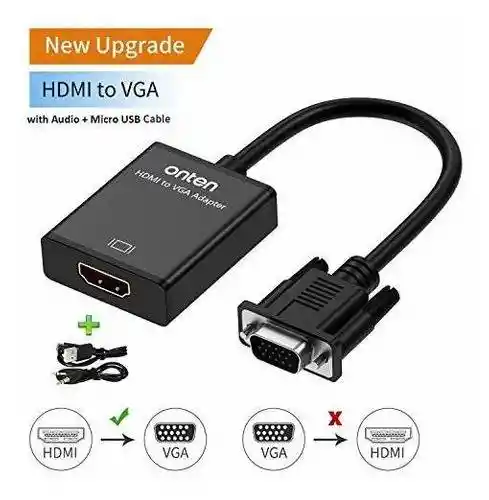 HDMI hembra a VGA adaptador macho. Está diseñado especialmente para TV Stick Google Chromecast Intel Compute Stick Roku Streaming Stick Podría conectar un dispositivo compatible con HDMI a un monitor o proyector con puerto VGA. Fuente HDMI Escritorio Notebook Fire Stick Frambuesa Pi Google Chromecast Tablet PC Digital Settop Box Cámara Digital Cámara SLR Cámara de Video Dispositivo VGA TV Monitor Project LCD LED y otros dispositivos de visualización todos con puerto de entrada VGA excepto portátil. Nota: Sólo soporta HDMI entrada a VGA salida no es bidireccional Incorporado chip IC activo convierte la señal digital HDMI en vídeo VGA analógico puerto de audio de 35 mm envía audio a los altavoces o pantalla Soporta 720P 1080i 1080P Plug Play sin instalación de controlador de software Apoye la salida audio y video simultáneamente ✅Nuestros productos antes de ser enviados son probados ✅Para la garantía el producto debe mantener sus sellos y no cubre daños ocasionados por el comprador.