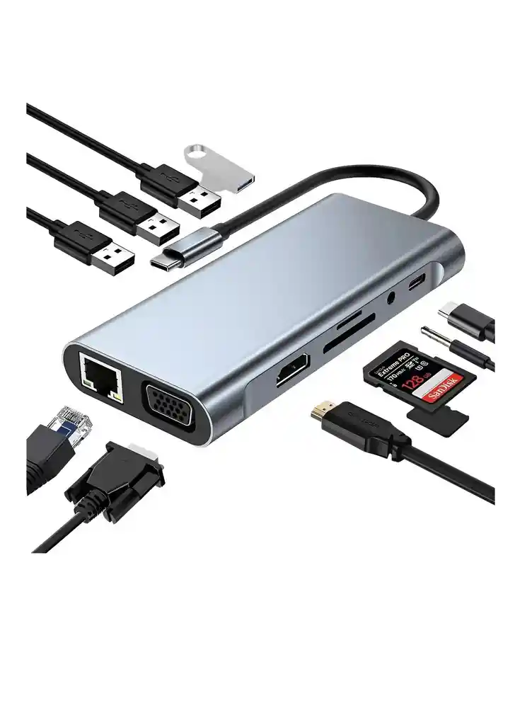 Hub USB-C 11 en 1 multifuncional, ideal para ampliar las conexiones de tu portátil o celular de forma práctica y rápida. Permite conectar múltiples dispositivos al mismo tiempo, mejorando tu productividad en trabajo, estudio o entretenimiento. Cuenta con puertos como HDMI, USB, lector de tarjetas y más, ofreciendo una solución completa en un solo dispositivo. Su diseño compacto y portátil lo hace perfecto para llevar a cualquier lugar. ✔ 11 puertos en 1 solo dispositivo ✔ Conexión USB-C de alta velocidad ✔ Compatible con laptops, tablets y celulares ✔ Diseño compacto, resistente y fácil de transportar ✔ Ideal para oficina, estudio o uso diario