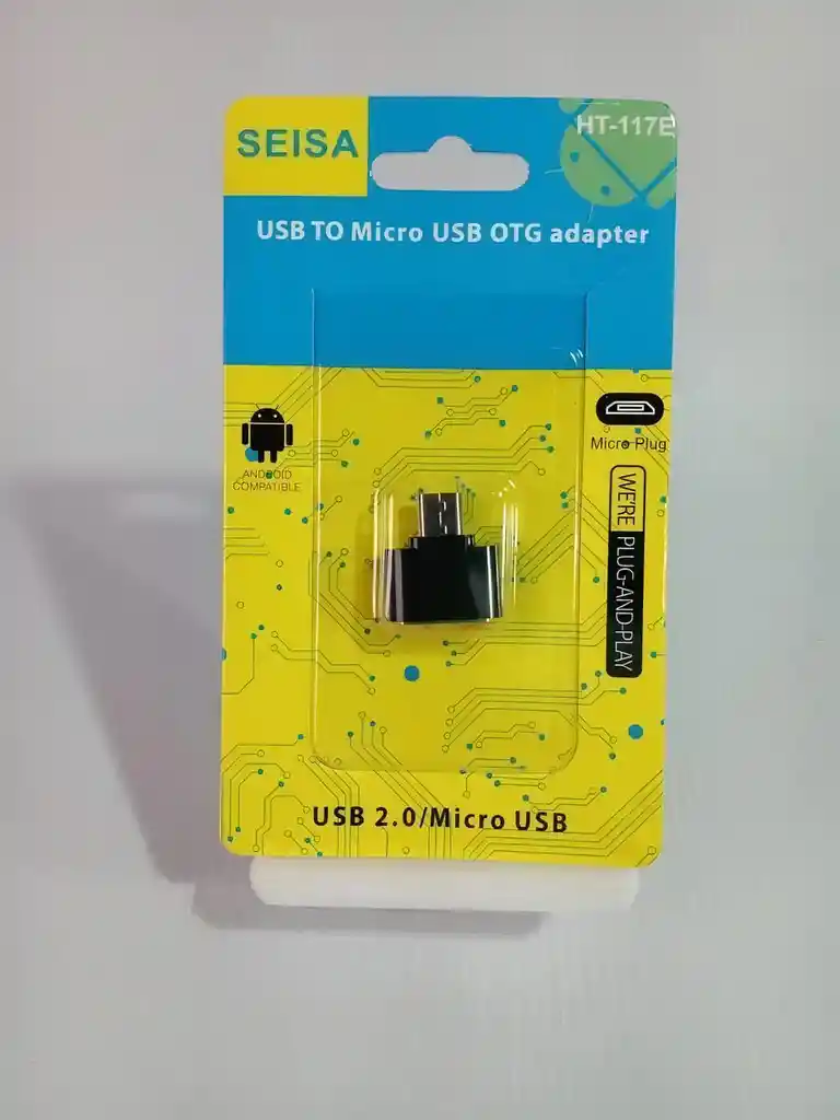 Marca: Seisa Modelo: OTG-M4 Ficha: USB 2.0 Hembra a Micro USB Temperatura de Trabajo: 10°c -35°c Compatible: Celulares inteligentes, Mp3, Cámaras digitales con entrada micro USB incorporado
