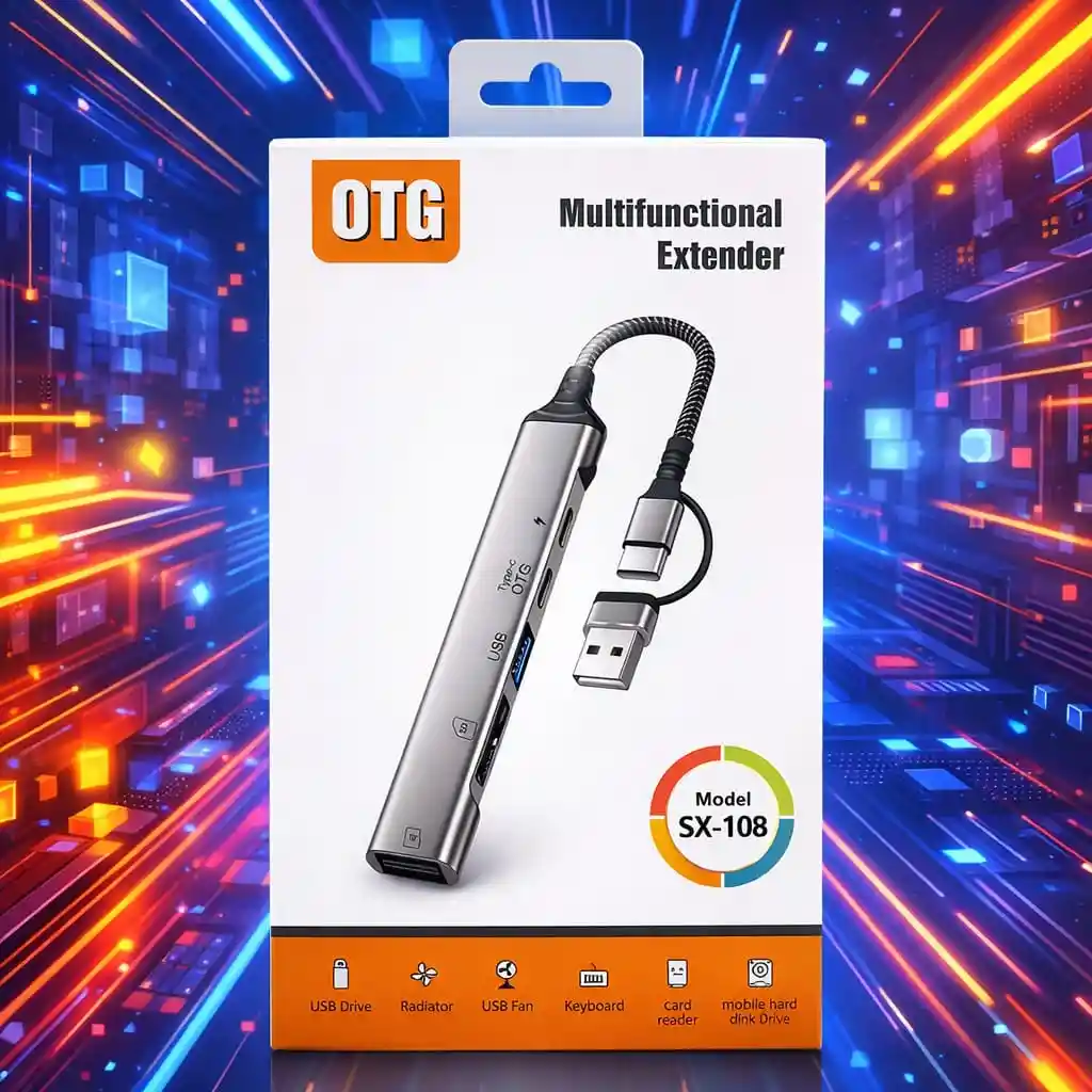 Convierte tu puerto Tipo C en múltiples conexiones con este Adaptador OTG Multifuncional SX-108. Ideal para celulares compatibles con OTG, tablets y portátiles con puerto Tipo C. Permite conectar memorias USB, teclado, mouse, lector de tarjetas y otros dispositivos al mismo tiempo. Perfecto para trabajo, estudio, presentaciones o uso diario. Funciones principales: Puerto USB para memorias y periféricos Puerto HDMI para conexión a pantalla externa Entrada Tipo C para carga Compatible con dispositivos OTG Diseño compacto y resistente Modelo: SX-108 Amplía la capacidad de tu equipo sin necesidad de instalar programas. Ideal para quienes necesitan productividad móvil.