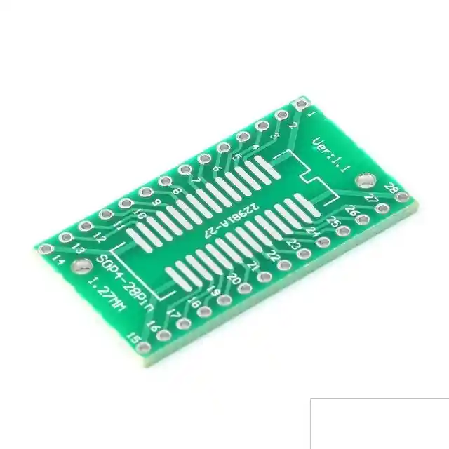 1. Adaptador SOP28 a DIP28 2. Tamaño: 20.32 * 35.46mm 3. un lado es de 0,65 mm de paso, el otro lado es de 1,27 mm LA COMPRA INCLUYE: 1x ADAPTADOR SOP28 SSOP28 TSSOP28 A DIP28