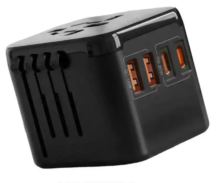 Viaja sin preocupaciones con este Adaptador Universal de Viaje 4 en 1, diseñado para funcionar en más de 200 países, incluyendo EE.UU., Europa, Reino Unido, Asia y Australia. Es la herramienta indispensable para viajeros, ejecutivos, estudiantes y cualquier persona que necesite cargar múltiples dispositivos con rapidez y seguridad. Su diseño compacto incluye enchufes internacionales retráctiles y 4 puertos USB de carga rápida: 1 USB-C PD 20W 1 USB QC 18W 2 USB de carga estándar Perfecto para cargar celulares, tablets, iPhone, Samsung, laptops, cámaras, audífonos, powerbanks, entre otros. Fabricado en ABS resistente, evita sobrecalentamiento y protege tus dispositivos con un sistema seguro y estable. Si buscas comodidad, velocidad y compatibilidad total, este adaptador será tu mejor aliado en casa, oficina o cualquier destino del mundo. BENEFICIOS DESTACADOS Compatibilidad Mundial (200+ Países) Incluye enchufes tipo US, EU, UK y AUS, ideales para América, Europa, Asia y Oceanía. Carga Rápida PD + QC Ahorra tiempo con tecnología Power Delivery 20W y Quick Charge 18W. 4 Puertos USB Simultáneos Carga varios dispositivos a la vez sin pérdida de potencia. Máxima Seguridad Construido en ABS ignífugo, con protección contra • sobrecarga • cortocircuito • sobrecalentamiento Diseño Compacto y Portátil Ligero, moderno y perfecto para maletas de viaje o uso diario. No necesita transformador Funciona con voltaje universal 100–240V.