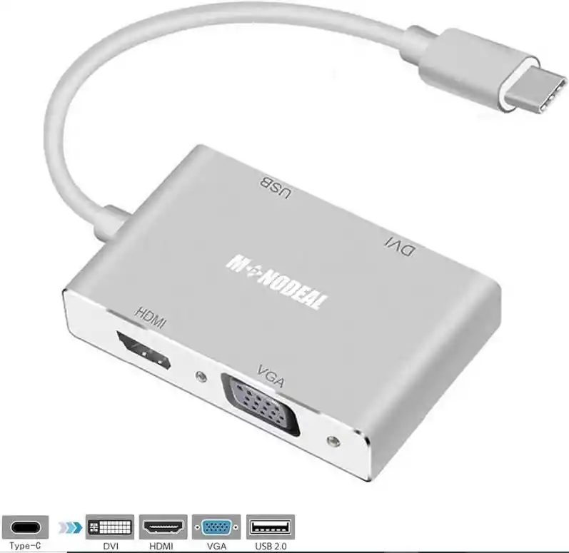 Adaptador USB-C 4 en 1 HDMI DVI VGA con puerto USB tipo C 4K! NOTA: SACADO DE LA IA: Porque no todos los puertos USB-C sirven para sacar video, aunque físicamente se vean iguales. Te lo explico claro y sencillo 👇 🔹 1. USB-C es solo el conector, no la función Un puerto USB-C puede tener distintas capacidades: Solo carga Solo datos Datos + carga Datos + carga + video Si no tiene salida de video, no sacará imagen HDMI aunque uses un adaptador. 🔹 2. Necesita “DisplayPort Alt Mode” Para sacar imagen por HDMI, el USB-C del portátil debe soportar DisplayPort Alternate Mode (DP Alt Mode). Si no lo soporta, ningún adaptador USB-C a HDMI funcionará. 📌 Muchos portátiles económicos traen USB-C solo para datos o carga. 🔹 3. Thunderbolt ≠ USB-C común Thunderbolt 3 o 4 (USB-C) 👉 SIEMPRE saca video USB-C normal 👉 A veces sí, a veces no 💡 El puerto Thunderbolt suele tener un ícono de rayo ⚡. Cómo saber si un portátil SÍ saca video por USB-C ✔️ Revisar especificaciones del fabricante ✔️ Buscar íconos junto al puerto: 📺 o DP → saca video ⚡ → Thunderbolt ✔️ Probar con monitor y adaptador certificado El adaptador USB-C 4 en 1 es una solución multipuerto ideal para ampliar la conectividad de portátiles y computadores modernos. Permite conectar tu equipo USB-C a pantallas y monitores mediante HDMI, DVI y VGA, además de ofrecer un puerto USB 2.0 adicional para periféricos. Las salidas HDMI y DVI soportan resolución 4K (3840 × 2160 a 30 Hz), compatibles también con 1080P y 720P, entregando audio y video de alta definición. Los modos HDMI + VGA o DVI + VGA pueden funcionar de forma simultánea, permitiendo conectar dos pantallas externas al mismo tiempo, con resolución máxima de 1080P cuando se usan juntas. (HDMI y DVI no funcionan simultáneamente). Incluye puerto USB 2.0 con velocidad de transferencia de hasta 480 Mbps y salida de corriente máxima de 500 mA, ideal para memorias USB, mouse, teclado u otros dispositivos. Es Plug and Play, no requiere drivers ni alimentación externa. Compatible con Windows 10/8.1/8, Mac OS y Chrome OS, funciona perfectamente con MacBook, MacBook Pro y Chromebook Pixel con puerto USB-C. ✅!ESTAMOS EN GOOGLE EN 1 PAGINA (COMPUVIRTUAL MEDELLIN)