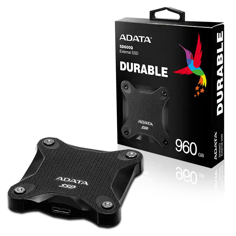 ¡La elegante SD600Q tiene que ver con la velocidad! La unidad de estado sólido externa ofrece hasta 440 MB por segundo de lectura y escritura, es decir, cuadruplica la velocidad que obtendría con discos duros externos. Lo hace gracias a su Flash NAND 3D, que ofrece un excelente rendimiento, confiabilidad y tiempos de carga más cortos. Además, la unidad SD600Q cuenta con una construcción resistente a los golpes, funcionalidades de disipación de calor, funcionamiento silencioso y eficiencia energética. Con un peso de solo 60 g, no notará que lleva la unidad SD600Q. Junto con su factor de forma del tamaño de la palma de la mano, se deslizará fácilmente dentro y fuera de su bolsa o bolsillo, siempre que lo necesite, donde sea que esté. La unidad SD600Q está encapsulada en una carcasa de silicona que absorbe los impactos, lo que ofrece la máxima protección para los datos y la unidad en su interior. La unidad SD600Q puede sobrevivir a caídas desde hasta 1,22 metros y cumple el estándar militar MIL-STD-810G 516.6 de EE. UU. En otras palabras, es bastante difícil. Android*, macOS y Windows, la unidad SD600Q los admite todos. Disfrute de sus vídeos, fotos, música y todo lo demás en cualquier momento y compártalos fácilmente con la unidad SD600Q. Además, también es genial para jugar. Especificaciones: Capacidad: 960GB Color: Negro Dimensiones ( LA x AN x AL ): 80 x 80 x 15,2 mm Peso: 60 g Interfaz: USB 3.2 Gen1 ( compatible con las versiones anteriores USB 2.0 ) Textura: Plástico y silicona antigolpes Temperatura de funcionamiento: 5–50°C / 41–122°F Voltaje de funcionamiento: 5 VCC, 900 mA Requisitos del sistema: Windows 8 / 8.1 / 10 Mac OS X 10.6 o posterior (es necesario volver a formatear para su uso) Linux Kernel 2.6 o posterior Android 5.0 o posterior Accesorios: Cable USB 3.2 y guía de inicio rápido Garantía: 36 meses