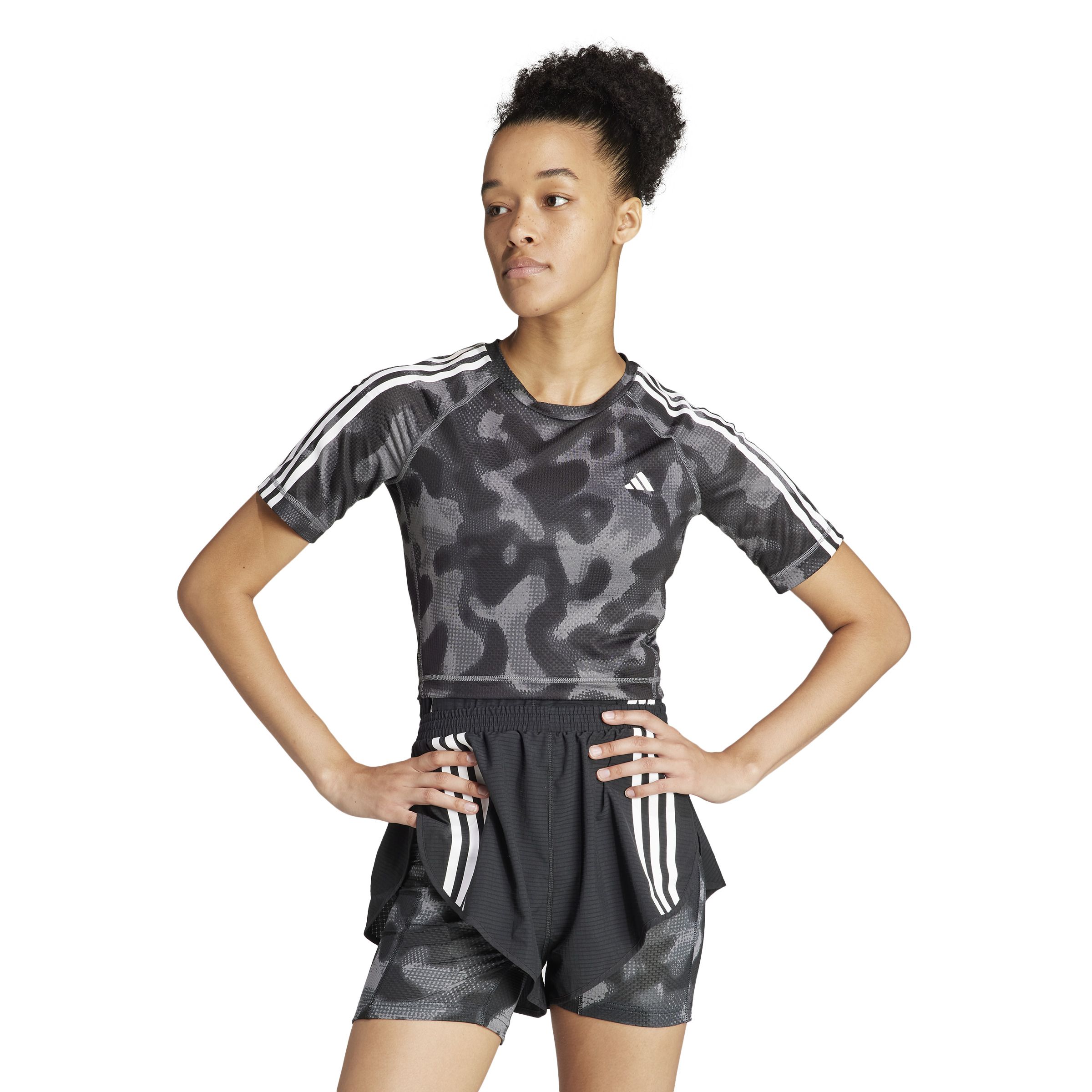 Adidas Camiseta Own The Run 3 Rayas Estampada Manga Corta gris de mujer para correr Referencia:IK5012 Talla: M