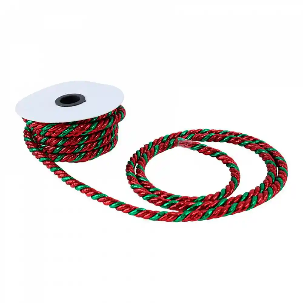 Adorno para árbol santini de cuerda, color rojo, elaborado en algodón. Aporta textura rústica y navideña a la decoración.