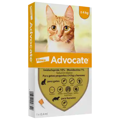 Advocate Gatos es el antiparasitario en pipeta para mascotas más completo del mercado, ofreciéndoles una protección superior contra los principales parásitos externos e internos. Advocate Gatos es usado para el tratamiento y control de las pulgas Ctenocephalides spp., tratamiento de la infestación por el ácaro del oído Otodectes cynotis, tratamiento de la demodicosis causada por Demodex cati, Notoedres cati, control de la infestación por el parásito del corazón Dirofilaria immitis, larva L3 y L4, tratamiento de las infestaciones por nemátodos gastrointestinales: larva L4, adultos inmaduros y adultos de Toxocara canis, Ancylostoma caninum y Uncinaria stenocephala y adultos de Toxascaris leonina y Trichuris vulpis.