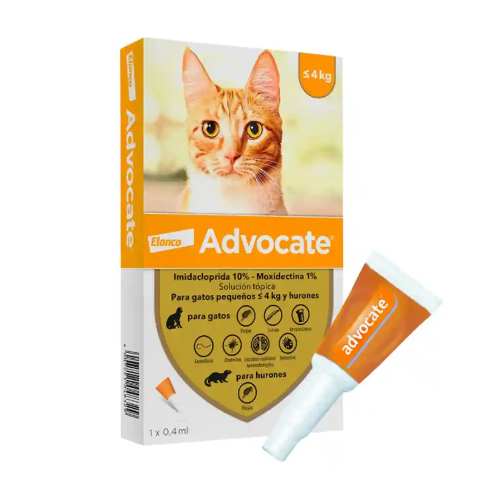 El antiparasitario en pipeta Advocate Gatos 0.4 ml – hasta 4 Kg es el más completo del mercado, ofreciendo una protección superior contra los principales parásitos externos e internos. Advocate® Gatos es usado para: Control de las pulgas Tratamiento de la infestación por el ácaro del oído Tratamiento de la demodicosis Control de la infestación por el parásito del corazón, larva L3 y L4 Tratamiento de las infestaciones por nematodos gastrointestinales.
