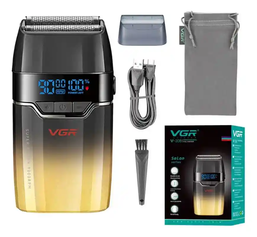 CARACTERISTICAS: Material del cuerpo: ABS Material de la cuchilla: Titanio negro Batería: 1200 mah Potencia: 5W Velocidad: 21 posiciones: 7000 a 9000RPM Tiempo de carga: 2hs Tiempo de uso: 150 Minutos Corte mínimo: 0mm INCLUYE: 1x Maquina VGR 1x Protector 1x Cable de carga USB 1x Cepillo de limpieza 1x Bolsa 1x Manual