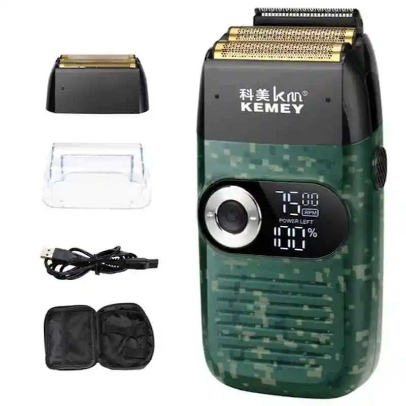 Afeitadora Eléctrica Kemei KM-2027, hasta 85 minutos de batería Afeitadora eléctrica - Motor de cobre - Malla doble - Poco ruido - Pantalla LCD - Hasta 85 minutos - Recargable Afeitadora eléctrica Kemei KM-2027, cuenta con un motor de cobre de altas prestaciones y malla de afeitado doble de acero inoxidable. Además, podrás adaptar la potencia del motor a cada situación y conseguir un afeitado de gran calidad y respeto por tu piel. Y siendo una de las afeitadoras más silenciosas que tenemos.