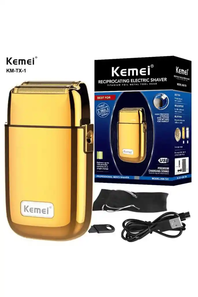 La afeitadora eléctrica Kemei KM-TX1 es una opción práctica y elegante para el afeitado diario. Su diseño compacto y portátil la hace ideal para llevar en el bolso, mochila o equipaje de viaje, sin ocupar espacio. Cuenta con cuchilla de malla metálica que ayuda a lograr un afeitado más uniforme y cómodo, adecuada para retoques rápidos y uso personal. Su acabado color dorado le da un estilo moderno y sofisticado. Es recargable por USB, lo que permite cargarla fácilmente en casa, en el carro o con power bank. Ideal para hombres que buscan practicidad y funcionalidad en su rutina de cuidado personal. Características principales: Afeitadora eléctrica portátil Diseño compacto y liviano Cuchilla tipo malla para afeitado uniforme Recargable por USB Color dorado elegante Ideal para uso diario o viajes Incluye: 1 Afeitadora eléctrica Kemei KM-TX1