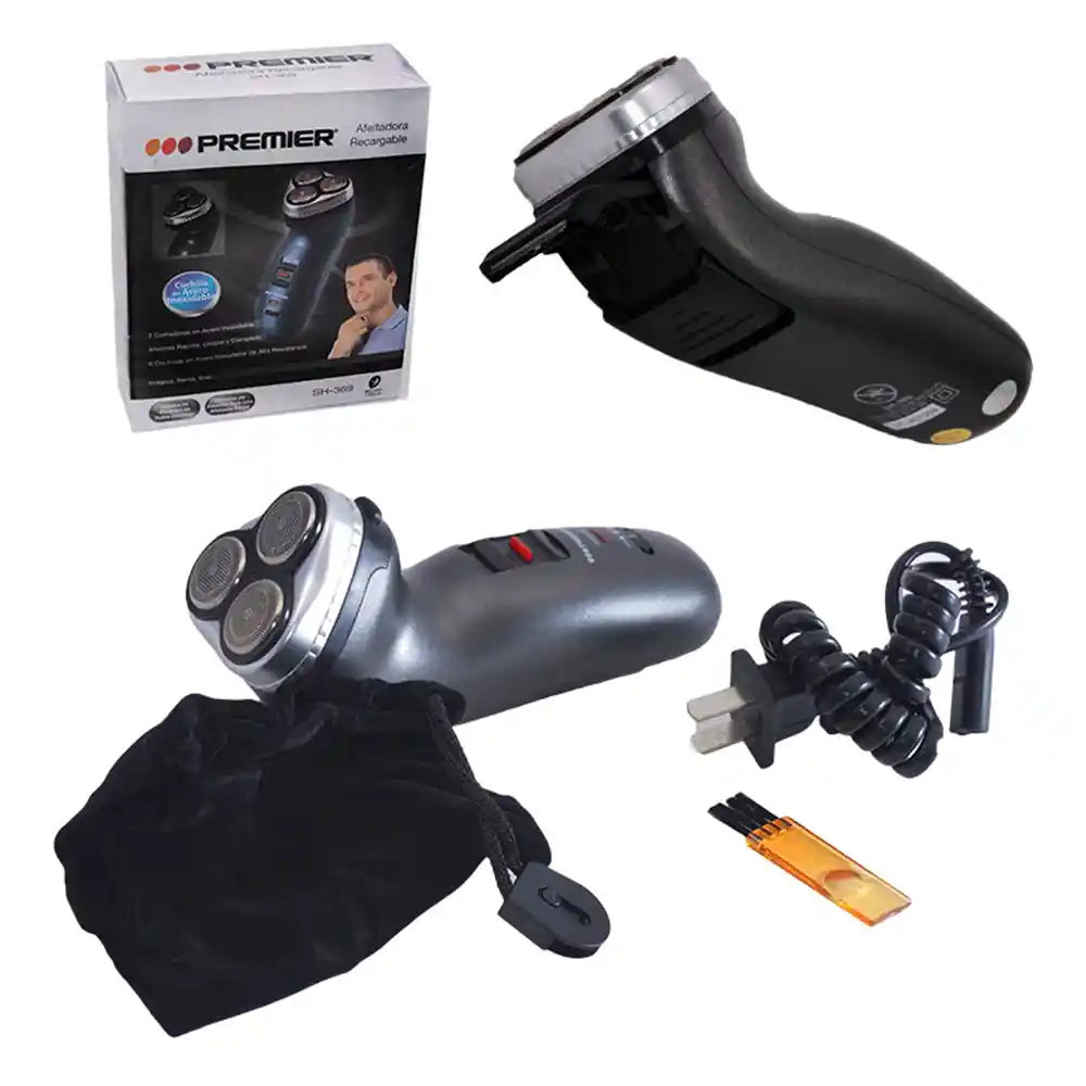 *** MÁQUINA DE AFEITAR O AFEITADORA PREMIER SH-369 GRIS *** ** DESCRIPCIÓN: ** Complementa tu rutina de cuidado personal con esta máquina de afeitar que definirá tu estilo y personalidad en pocos segundos. Obtén un rostro liso, limpio y sin vello con la suavidad que solo Premier te ofrece. Sus 3 cabezas te asegurarán una afeitada fresca y suave así como también la no presencia de irritaciones o resequedad en la piel. Este tipo de máquina (eléctrica) tiene una gran ventaja sobre las demás, ya que no se necesita de humedecer la cara antes de afeitarse, así como tampoco el uso de grandes cantidades de espuma para afeitar. Con la Máquina de afeitar 3 cabezas Premier obtendrás una afeitada rápida, limpia y completa en muy poco tiempo. Posee 6 cuchillas y 3 cortadoras en acero inoxidable de alta resistencia que la hacen ser un producto confiable y de gran durabilidad. Asimismo, contiene un sistema de bloqueo de doble dirección para que no se ensucie con facilidad. No tendrás ningún tipo de problema a la hora de llevarla a cualquier parte, ya que incluimos un lindo estuche para transportarla. Este tipo de máquinas tienen un voltaje de AC 110V / 60 Hz. Se te recomienda recargarla de 8 a 14 horas para obtener un óptimo funcionamiento. *** NO DEJES PASAR ESTE PRODUCTO A UN PRECIO DE OFERTA UNIDADES LIMITADAS *** ** CARACTERÍSTICAS DEL PRODUCTO: ** Con la máquina eléctrica lograrás un corte perfecto a la hora de rasurar el vello. Normalmente, se habla de vello para referirse a la cara o zonas cercanas a ella, sin embargo, hoy día, esto se ha expandido logrando trabajar en otras zonas del cuerpo. El afeitado es una práctica usada por miles de hombres en todo el mundo, principalmente para el cuidado de la barba y el bigote. ** DESTACADO DEL PRODUCTO: ** • Máquina de afeitar 3 cabezas Premier SH-369. • 3 Cortadoras en acero inoxidable. • 6 Cuchillas en acero inoxidable de alta resistencia. • Afeitada rápida, limpia y completa. • Sistema de bloqueo de doble dirección. • Estuche para transportar. • Tiempo de recarga de 8-14 Horas. • Voltaje: AC 110V / 60Hz. • Nuevo sistema de resorte para una afeitada firme. • Colores sujetos a disponibilidad de Inventario, Colores disponibles gris. ** CONTENIDO DE LA CAJA: ** • 1 Afeitadora • 1 Estuche Viajero • 1 Cable para Recargar