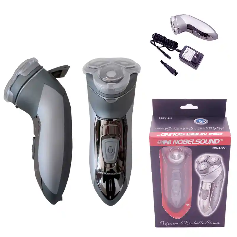 <<<<< AFEITADORA 3 CABEZAS MAQUINA DE AFEITAR NOBELSOUND NS-A353 GRIS >>>>> <<<<< DESCRIPCIÓN: >>>>> Nobelsound te trae la afeitadora de 3 cabezas NS-A353, por su forma ergonómica puedes tener una afeitada al ras y tener tu piel libre de impurezas y de cortadas , quedaras con una piel suave sin irritaciones.Cuentra una gran variedad de productos para el cuidado de tu piel, por eso te traemos esta maravillosa afeitadora, la cual podrás recargar en 8 horas y tendrá una duración de 15 días. Lavable puede usarse en condiciones de humedad ********** EL BARATILLO TE TRAE ESTE SUPER DESCUENTO, APROVECHA YA UNIDADES LIMITADAS!!! ********** <<<<< CARACTERÍSTICAS DEL PRODUCTO: >>>>> Diseño moderno y de práctico uso Funciona conectándola a la base de carga directamente a la toma corriente común (110V) por un tiempo de duración promedio de 30 min Obtienes carga para utilizarla por más de 8 días. Turbo Cabezales auto ajustable. Con tu afeitadora eléctrica podrás fácilmente darle forma al diseño y estilo de tu barba, patilla y bigote. Cuenta con un diseño 100% anatómico a tus necesidades corporales, es sensible sobre cualquier superficie de la cara y cuerpo. Posee botón de encendido y apagado y luz indicadora de carga. Con servicio de patillera, podrás fácilmente rasurar a raz o darle la altura de corte deseado, según tu estilo. La afeitadora está elaborada con materiales de la más alta calidad y última tecnología, resistente a golpes y rayones, cualidades importantes para cubrir tus necesidades durante un largo tiempo. <<<<< DESTACADO DEL PRODUCTO: >>>>> • Diseño Moderno y de Practico Uso • Totalmente Higiénico y de fácil Aseo. • Materiales de la más Alta Calidad. • Resistente a Golpes y Rayones. • Garantía por Defectos de Fabricación. <<<<< CONTENIDO DE LA CAJA: >>>>> • Afeitadora Eléctrica • Cargador y cable de carga 110V • Funda de Transporte • Cepillo de aseo • Manual de uso