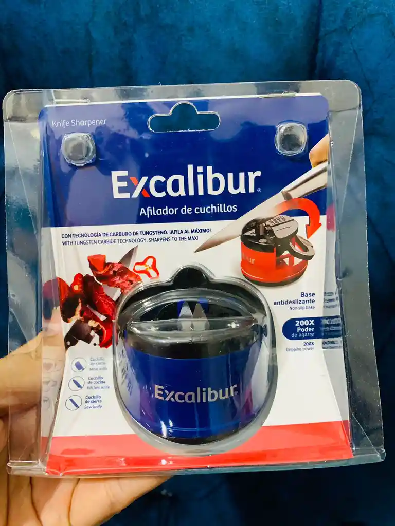 AFILADOR DE CUCHILLOS EXCALIBUR Con este afilador podrás mantener todos tus cuchillos bien afilados en cuestión de segundos, es fácil de usar y viene con un PAD para que se quede pegado en cualquier superficie plana mientras afilas tus cuchillos. POLITICA DE GARANTIA: PEDIDO INCOMPLETO: 10 DIAS por motivos de revisión del producto, donde se evidencie que la orden no se envió completa. MAL FUNCIONAMIENTO: 10 DIAS DE GATANTIA POR DAÑOS DE FUNCIONAMIENTO, NO INCLUYE INCONVENIENTES PRESENTADOS POR GOLPES O PROBLEMAS CON EL DISPOSITIVO PROVENIENTES DE UN MAL USO DEL MISMO. PEDIDO ROTO: 10 DIAS DE GATANTIA POR LLEGADA DEL PEDIDO ROTO O EN MAL ESTADO, NO INCLUYE INCONVENIENTES PRESENTADOS POR GOLPES O PROBLEMAS CON EL DISPOSITIVO PROVENIENTES DE UN MAL USO DEL MISMO. PEDIDO DIFERENTE: 10 DIAS DE GARANTIA, POR MOTIVOS DONDE SE EVIDENCIE QUE AL CLIENTE FINAL LE LLEGA UN PRODUCTO TOTALMENTE DIFERENTE AL QUE ESTÁ PUBLICADO Y/O AL QUE HA PEDIDO, TODA VEZ QUE SE HAYA HECHO UN ERROR HUMANO POR PARTE DEL PROVEEDOR Y NO PORQUE EL CLIENTE INDIQUE QUE PENSABA QUE EL PRODUCTO ERA DIFERENTE.