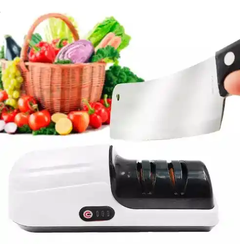 El afilador de cuchillos de cocina eléctrico USB es un producto de alta calidad que te permite afilar cuchillos o cuchillas y tijeras comunes de manera eficiente y segura. Para usarlo, simplemente conecte el afilador al botón de encendido y sosténgalo firmemente sobre la parte engomada negra. La hoja debe pasar por los lados del afilador, formando un ángulo de 45°, por ambos lados, tal y como se indica en el dibujo del afilador. Es importante tirar siempre de la hoja y no pasarla nunca de un lado a otro para garantizar un proceso de afilado eficaz. Se debe seguir el mismo procedimiento para afilar las tijeras, pero con la hoja en un ángulo de 90°. El producto está disponible en colores blanco y rosa. Tiene una potencia de 5 W y una tensión de 5 V/2 A.