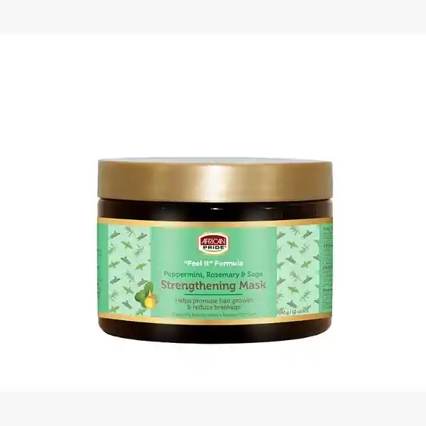 Descripción del Producto La mascarilla fortalecedora Feel It Formula está impregnada de aceite de menta, romero y salvia y es rica en proteínas. Ayuda a fortalecer e hidratar profundamente las hebras de tu cabello desde la raíz hasta las puntas mientras previene la rotura. MODO DE USO Aplicar una cantidad generosa sobre el cabello mojado, dejar actuar 5-10 minutos y aclarar con agua tibia. Para obtener mejores resultados, use una tapa de plástico transparente y déjelo debajo de una secadora durante 10 a 15 minutos. Funciona perfecto como tratamiento profundo. INGREDIENTES DESTACADOS Aceite de menta, aceite de romero, aceite de salvia