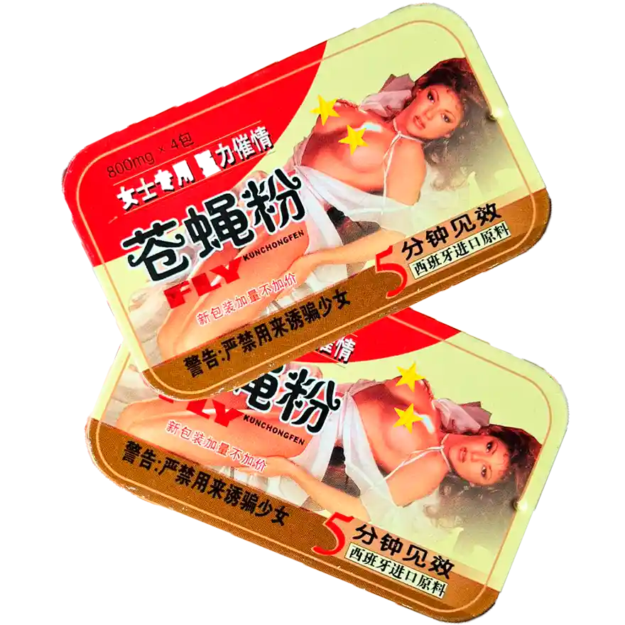 Todos nuestros productos van totalmente discretos y anónimos. Embalados en caja o bolsa de seguridad sellada y sin transparencia. Características: Potenciador y afrodisiaco chino femenino Fly Kunchongfen. Producto de alta calidad importado del continente asiático. Consumir 1 o 2 sobres 30 a 40 minutos antes del acto erótico. Sus efectos son aumento de la libido y del deseo sexual femenino. Contenido: 2 Cajas con 4 sobres cada una para un total de 8 sobres.