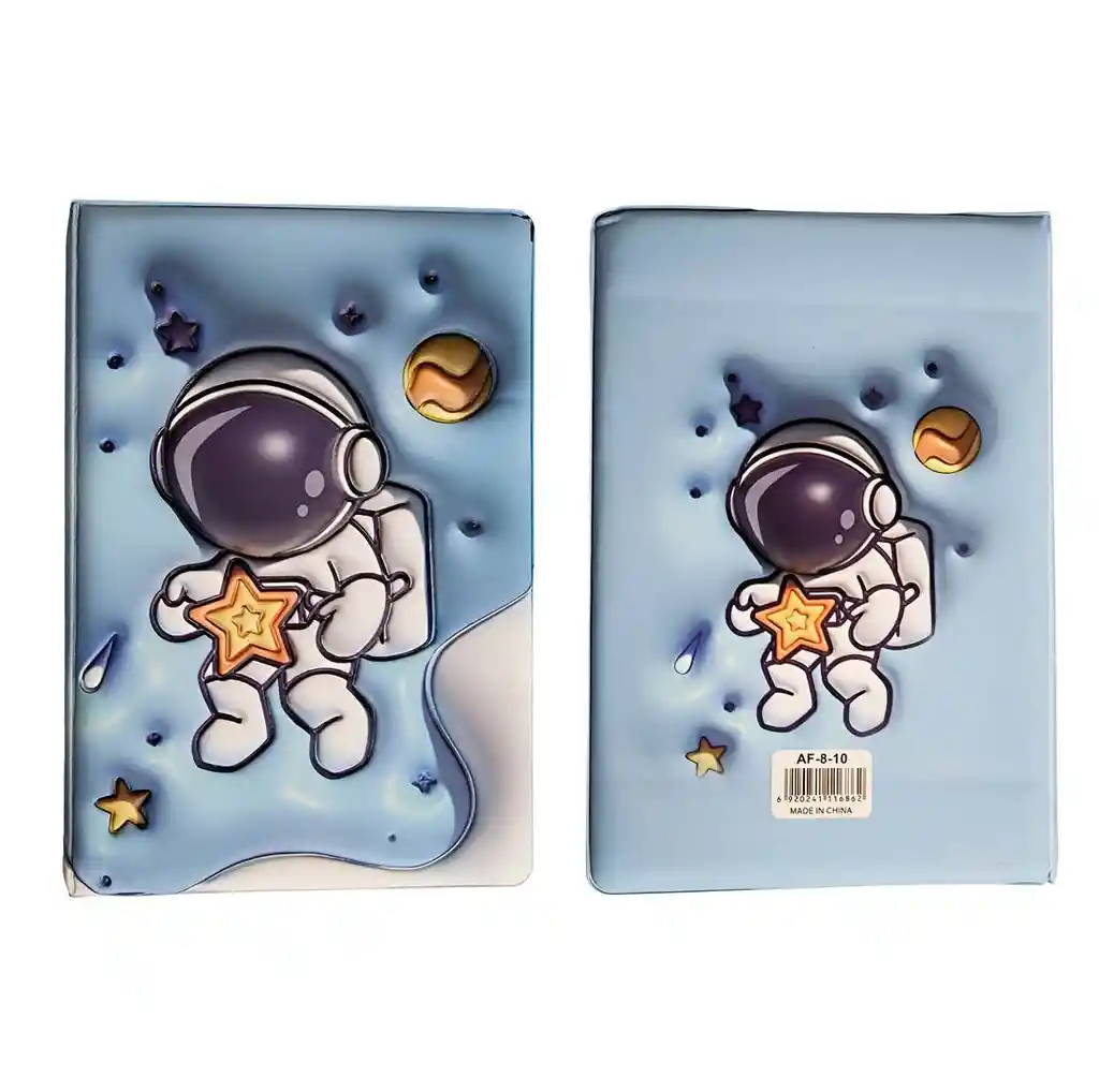 Hermosa libreta de notas con diseño de astronauta, ideal para quienes disfrutan de un estilo creativo y original; cuenta con tapas resistentes decoradas con ilustraciones espaciales y páginas internas con líneas y detalles gráficos que hacen más agradable la escritura, perfecta para tomar apuntes, anotar ideas o usar como diario personal, combinando practicidad con un diseño divertido y coleccionable. Ficha Técnica: Dimensiones: 19 cm x 13 cm x 2 cm Material: Plástico / Hojas Edad Recomendada: + 3 años Referencia: AF-8-10 Certificado de conformidad: E5-0359-2021 ** _Para defectos de fábrica o retractos: \_Por favor revise el producto apenas lo reciba y antes de usarlo. No aplican ley de retracto o defectos de fábrica luego de usar el producto. Se manejan máximo 5 días para reportar defectos de fábrica (por ejemplo, producto funciona mal, piezas faltantes, rotas, etc). Para hacer efectiva la devolución el producto debe devolverse con el empaque original, el cual debe estar en buen estado, incluir todos los documentos y las partes completas y sin daños.