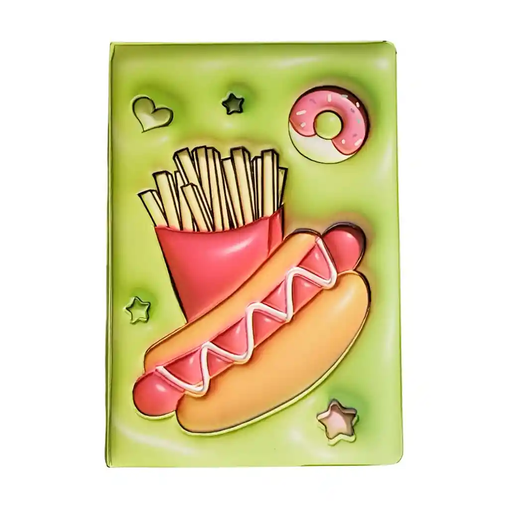 Hermosa libreta de notas con diseño de comida rápida, ideal para quienes disfrutan de un estilo divertido y original; cuenta con tapas resistentes decoradas con ilustraciones de hamburguesas, papas fritas y refrescos, mientras que sus páginas internas con líneas y detalles gráficos hacen más agradable la escritura, perfecta para tomar apuntes, anotar ideas o usar como diario personal, combinando practicidad con un diseño llamativo y coleccionable. Ficha Técnica: Dimensiones: 19 cm x 13 cm x 2 cm Material: Plástico / Hojas Edad Recomendada: + 3 años Referencia: AF-8-11 Certificado de conformidad: E5-0359-2021 ** _Para defectos de fábrica o retractos: \_Por favor revise el producto apenas lo reciba y antes de usarlo. No aplican ley de retracto o defectos de fábrica luego de usar el producto. Se manejan máximo 5 días para reportar defectos de fábrica (por ejemplo, producto funciona mal, piezas faltantes, rotas, etc). Para hacer efectiva la devolución el producto debe devolverse con el empaque original, el cual debe estar en buen estado, incluir todos los documentos y las partes completas y sin daños.