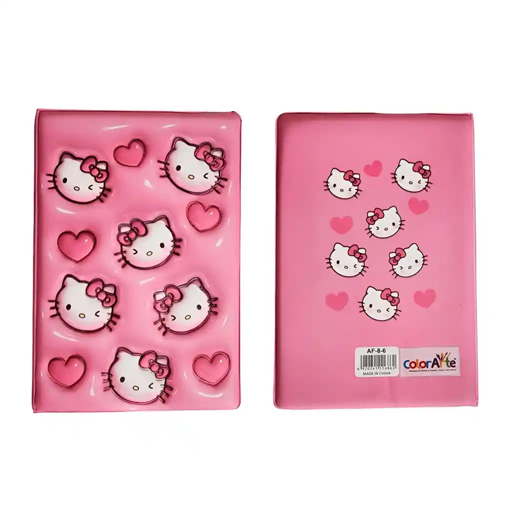 Hermosa libreta de notas con diseño de Hello Kitty, ideal para quienes disfrutan de un estilo tierno y encantador; cuenta con tapas resistentes en tono rosado decoradas con ilustraciones del personaje y páginas internas con líneas y detalles gráficos que hacen más agradable la escritura, perfecta para tomar apuntes, anotar ideas o usar como diario personal, combinando practicidad con un diseño adorable y coleccionable. Ficha Técnica: Dimensiones: 19 cm x 13 cm x 2 cm Material: Plástico / Hojas Edad Recomendada: + 3 años Referencia: AF-8-6 Certificado de conformidad: E5-0359-2021 ** _Para defectos de fábrica o retractos: \_Por favor revise el producto apenas lo reciba y antes de usarlo. No aplican ley de retracto o defectos de fábrica luego de usar el producto. Se manejan máximo 5 días para reportar defectos de fábrica (por ejemplo, producto funciona mal, piezas faltantes, rotas, etc). Para hacer efectiva la devolución el producto debe devolverse con el empaque original, el cual debe estar en buen estado, incluir todos los documentos y las partes completas y sin daños.