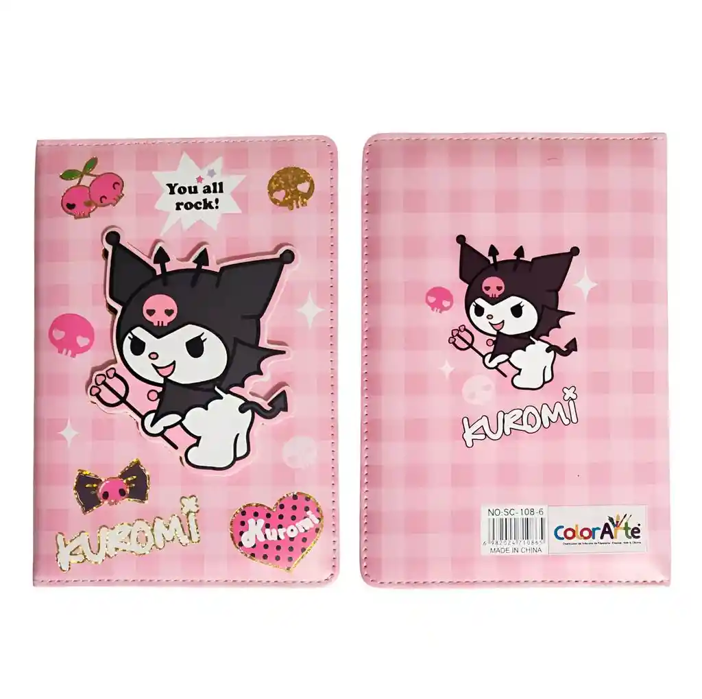 Hermosa libreta de notas con diseño de Kuromi, ideal para quienes disfrutan de un estilo tierno y divertido; cuenta con tapas duraderas en decoradas con ilustraciones del personaje y páginas internas con líneas y detalles gráficos que hacen más agradable la escritura, perfecta para tomar apuntes, anotar ideas o usar como diario personal, combinando practicidad con un atractivo diseño coleccionable. Ficha Técnica: Dimensiones: 19 cm x 13 cm x 2 cm Material: Plástico / Hojas Edad Recomendada: + 3 años Referencia: SC-108-6 Certificado de conformidad: E5-0359-2021 ** _Para defectos de fábrica o retractos: \_Por favor revise el producto apenas lo reciba y antes de usarlo. No aplican ley de retracto o defectos de fábrica luego de usar el producto. Se manejan máximo 5 días para reportar defectos de fábrica (por ejemplo, producto funciona mal, piezas faltantes, rotas, etc). Para hacer efectiva la devolución el producto debe devolverse con el empaque original, el cual debe estar en buen estado, incluir todos los documentos y las partes completas y sin daños.