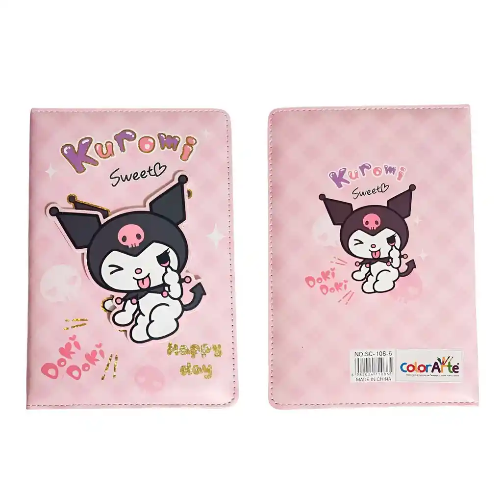 Hermosa libreta de notas con diseño de Kuromi, ideal para quienes disfrutan de un estilo tierno y divertido; cuenta con tapas duraderas en decoradas con ilustraciones del personaje y páginas internas con líneas y detalles gráficos que hacen más agradable la escritura, perfecta para tomar apuntes, anotar ideas o usar como diario personal, combinando practicidad con un atractivo diseño coleccionable. Ficha Técnica: Dimensiones: 19 cm x 13 cm x 2 cm Material: Plástico / Hojas Edad Recomendada: + 3 años Referencia: SC-108-6 Certificado de conformidad: E5-0359-2021 ** _Para defectos de fábrica o retractos: \_Por favor revise el producto apenas lo reciba y antes de usarlo. No aplican ley de retracto o defectos de fábrica luego de usar el producto. Se manejan máximo 5 días para reportar defectos de fábrica (por ejemplo, producto funciona mal, piezas faltantes, rotas, etc). Para hacer efectiva la devolución el producto debe devolverse con el empaque original, el cual debe estar en buen estado, incluir todos los documentos y las partes completas y sin daños.