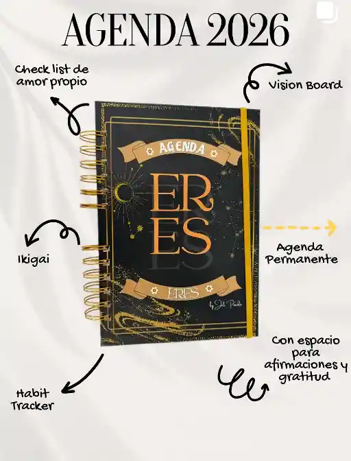 Más que una agenda, es una herramienta para conectar contigo, con tu propósito y con la mujer que estás construyendo cada día 💕 Disponible en dos colores hermosos, su contenido está pensado para acompañarte en tu crecimiento personal y en tu proceso de organización consciente: 💖 Checklist de amor propio 🌈 Vision board 🎯 Plan de metas 🌸 Ikigai (tu propósito de vida) 📆 Habit tracker 💌 Carta de fin de año 💫 Espacio para afirmaciones y gratitud 📅 Planeadores mensuales Además, es una agenda permanente, sin fecha, para que empieces cuando quieras… porque nunca es tarde para comenzar a escribir tu nueva historia