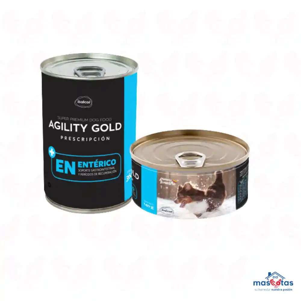 Lata de alimento Agility Enterico Canino especialmente formulada para perros con sensibilidad digestiva. Rica en ingredientes de alta calidad que favorecen la salud intestinal, promueven una digestión óptima y mantienen el bienestar general de tu mascota. Ideal para perros que requieren una dieta balanceada y nutritiva.