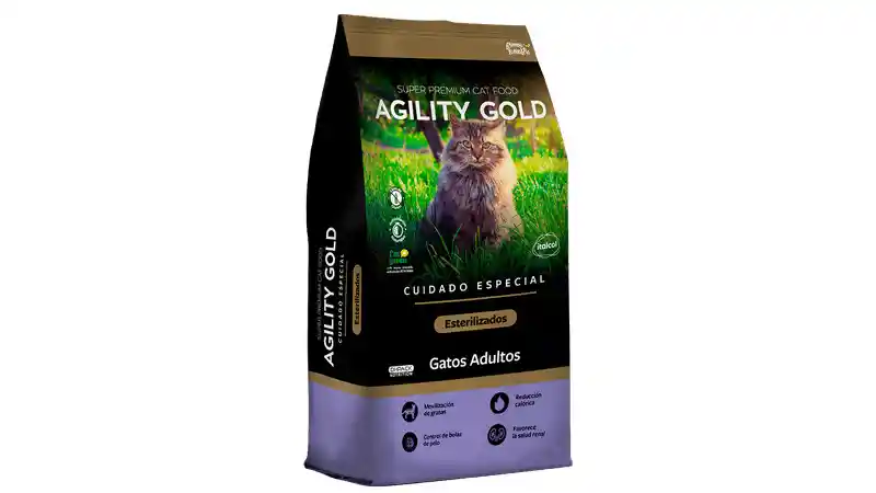 Agility gato adulto esterilizado es un alimento súper premium diseñado para gatos castrados, con un 36% de proteína animal para mantener la masa muscular. Su fórmula baja en grasas y con L-carnitina controla el peso, mientras favorece la salud urinaria y controla bolas de pelo, ofreciendo alta palatabilidad