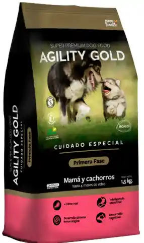 Super Premium Dog Food AGILITY GOLD PRIMERA FASE Descripción Pensando en la importancia de la nutrición en los primeros 4 meses de vida de los cachorros, Agility Gold desarrolló un producto en su línea cuidado especial denominado Primera Fase, el cual favorece el desarrollo y fortalecimiento del sistema inmunológico a través de compuestos bioactivos para garantizar un desarrollo óptimo en sus próximas etapas de vida. Beneficios El contenido y calidad de proteína altamente digestible; influyen significativamente en la función gastrointestinal. Inclusión de prebióticos y probióticos dan lugar a cambios específicos en la composición y/o la actividad de la microbiota intestinal. La modulación del sistema inmune ayuda a controlar los efectos negativos del estrés post destete, protegiendo al cachorro de posibles patologías muy comunes en esta etapa de vida. Las madres gestantes también requieren de una nutrición específica durante esta etapa, ya que su requerimiento energético y proteico es más alto.