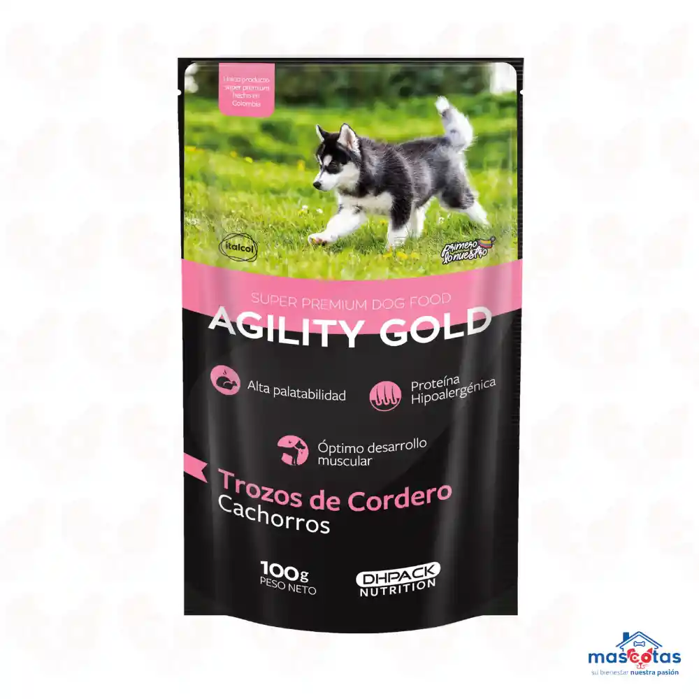 Pouch Agility Gold Cachorro Trozos de Cordero 100g es un alimento húmedo especialmente formulado para cachorros. Con trozos tiernos de cordero, aporta proteínas de alta calidad y nutrientes esenciales para el crecimiento sano y vigoroso de tu mascota. Su deliciosa receta certifica una alimentación balanceada, ideal para satisfacer el apetito de los más pequeños de la casa. Perfecto para complementar su dieta diaria y asegurar su bienestar.