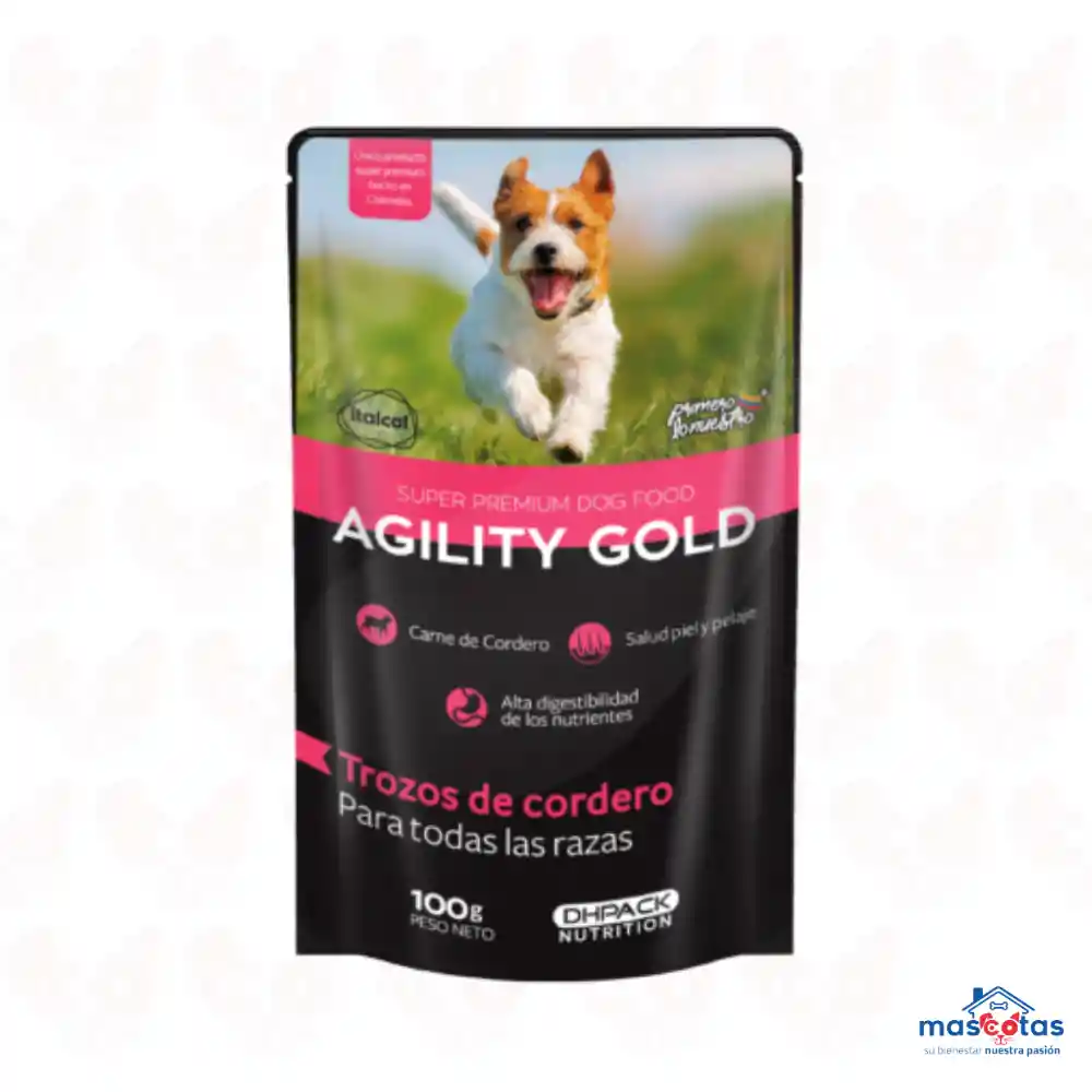 POUCH AGILITY GOLD TROZOS DE CORDERO 100G es un alimento húmedo premium para perros, elaborado con trozos de cordero de alta calidad. Su fórmula nutritiva favorece la salud y el bienestar de tu mascota, proporcionando energía y vitalidad. Ideal para perros activos, este delicioso manjar es perfecto como recompensa o complemento a su dieta diaria.