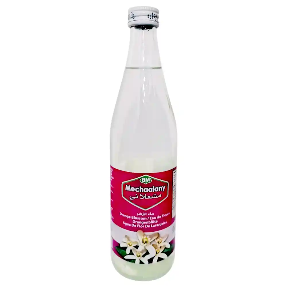 Esencia aromática de la marca Mechaalany destilada de la flor del naranjo, usada para acentuar el sabor y el aroma de postres, tortas y aguas saborizadas.