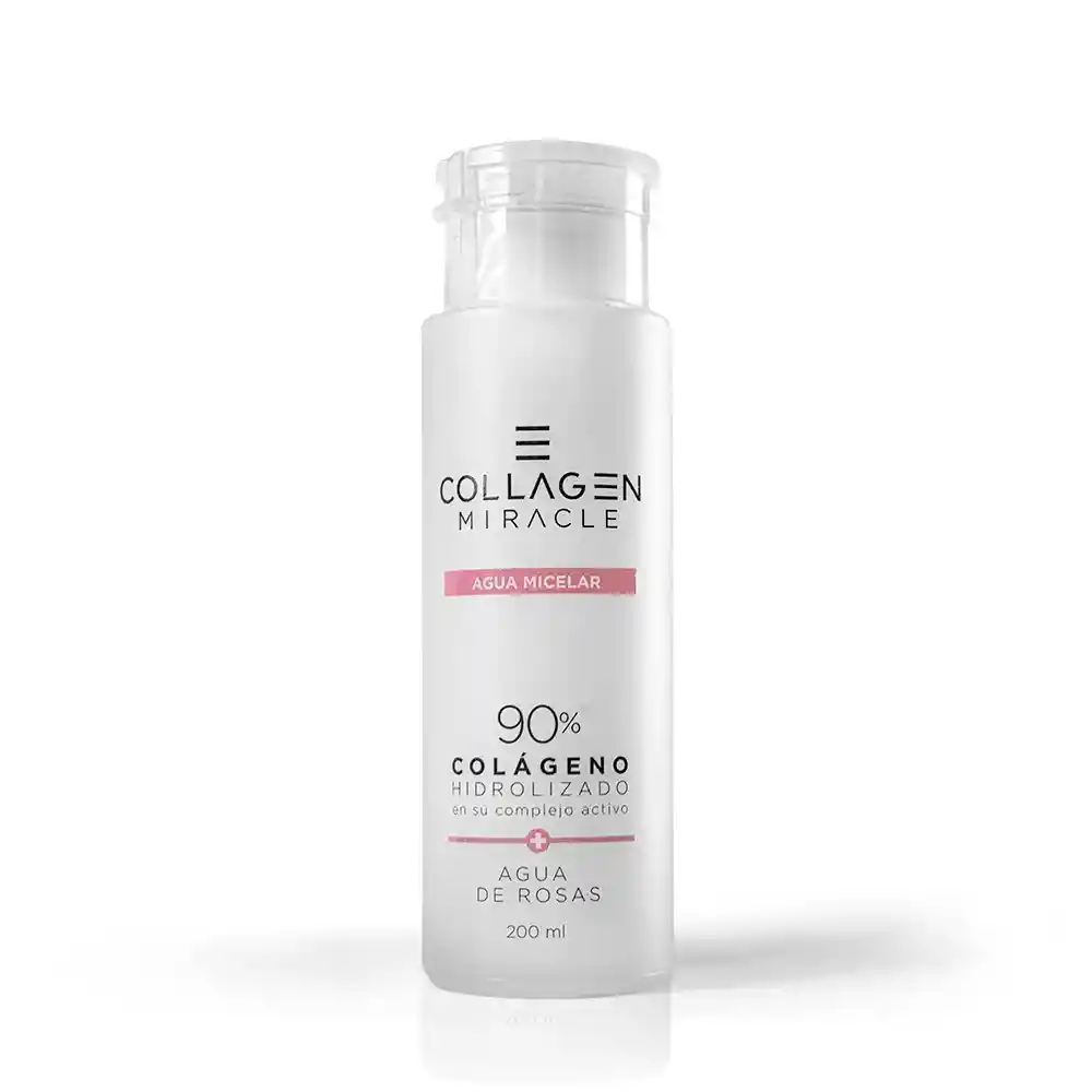 Agua Micelar Desmaquillante con 90% de Colágeno Hidrolizado en su complejo activo + Agua de Rosas. Gracias a las propiedades de oxigenación. control de grasa y pH balanceado. combinado con el poder del Agua Micelar con Colágeno dan como resultado una limpieza profunda para la piel. Dejando la piel limpia. suave y luminosa.