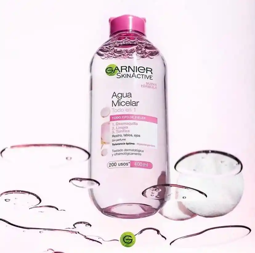 Agua micelar garnier 400 ml, desmaquilla, tonifica y limpia el rostro, labios y ojos. Sin perfume. Testeado dermatológicamente y oftalmológicamente