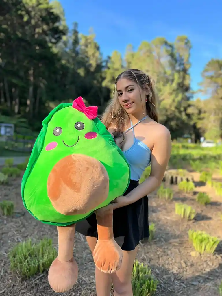 Hermoso peluche de Aguacate Gigante con una medida de 1 metro de longitud completa aproximada. Tiene un hermoso pelaje extra suave Nuestros peluches son fabricados con materiales de primera calidad, relleno de algodón siliconado antialergico suave que no se deforma ni endurece con el tiempo y brinda sensación de suavidad al tacto.